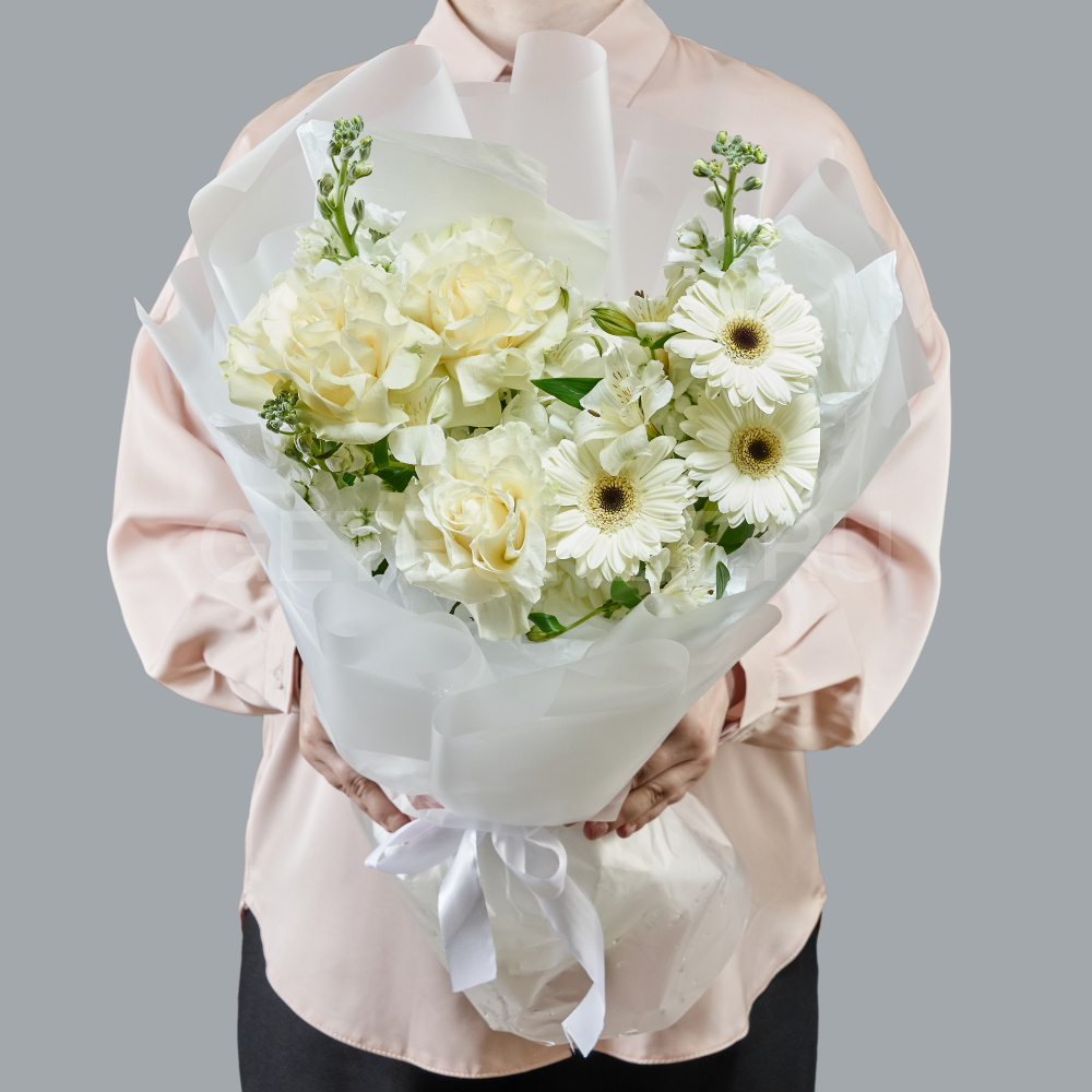 Букет из белых роз, хризантем и эустомы6 820 ₽Букет из белых роз, хризантем и эустомы 6 820 ₽ -