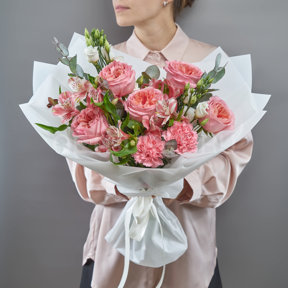 ХитБукет из розовых диантусов, роз и белых альстромерий3 200 ₽ХитБукет из розовых диантусов, роз и белых альстромерий 3 200 ₽ -