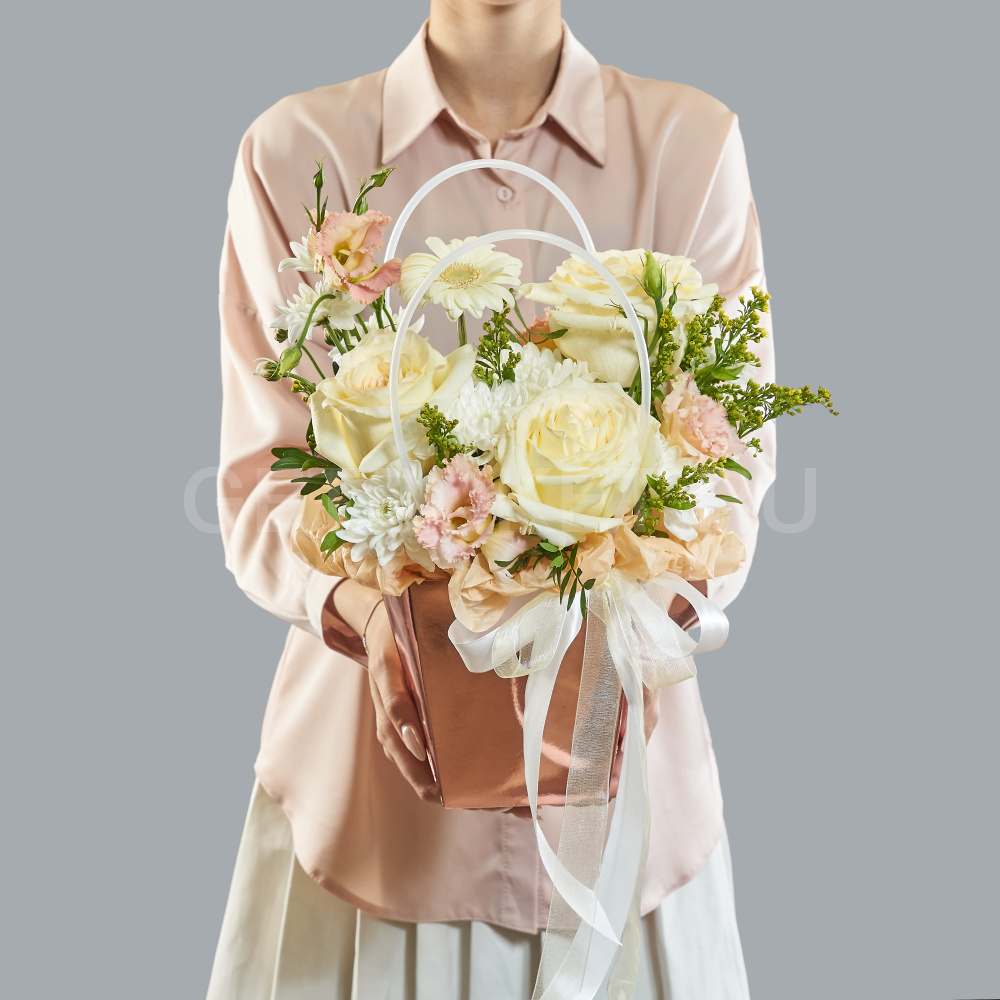 Цветочная композиция с розами, хризантемой и танацетумом в сумочке2 970 ₽Цветочная композиция с розами, хризантемой и танацетумом в сумочке 2 970 ₽ -