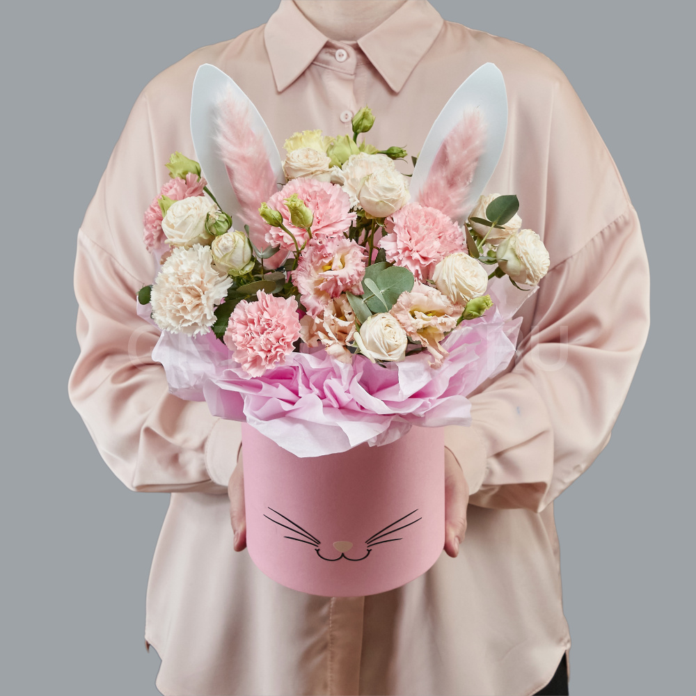 Нежная цветочная композиция из роз, гвоздик и эустомы в шляпной коробке4 320 ₽Нежная цветочная композиция из роз, гвоздик и эустомы в шляпной коробке 4 320 ₽ -