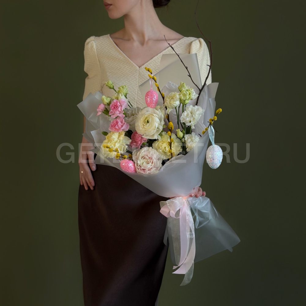 Пасхальный букет из гвоздик, кустовых роз и гербер с вербой4 080 ₽Пасхальный букет из гвоздик, кустовых роз и гербер с вербой 4 080 ₽ -