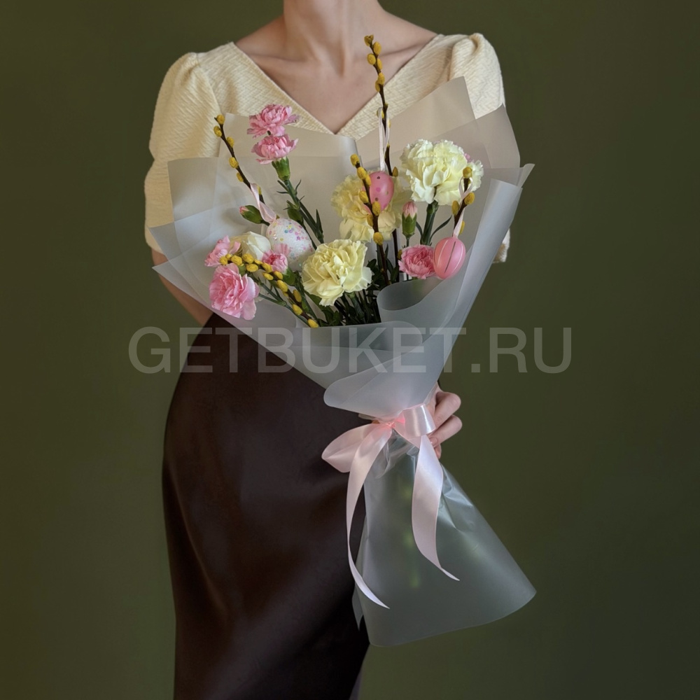Пасхальный букет из гвоздик, кустовых роз и гербер с вербой4 080 ₽Пасхальный букет из гвоздик, кустовых роз и гербер с вербой 4 080 ₽ -
