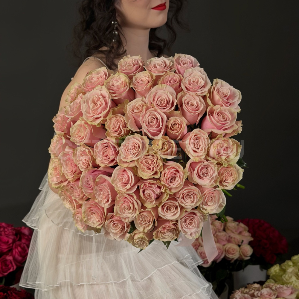 Букет из 51 нежно-розовой розы